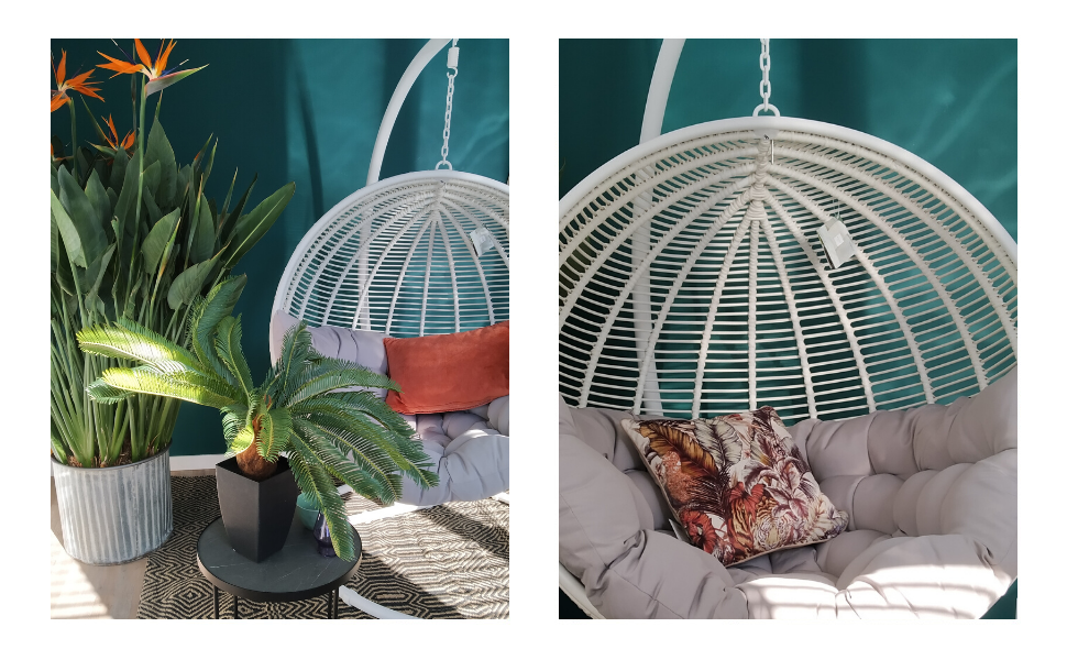 Fotel wiszący to obowiązkowy element wiosenno-letniego ogrodu, co nie oznacza, że nie sprawdzi się także… w domu! Będzie stanowił znakomite uzupełnienie aranżacji salonu, jadalni lub pokoju dziecinnego. Wieczór z Netflixem? A może popołudnie z ulubionym magazynem lub książką? Niezależnie od tego, na co się zdecydujecie - bujając się w Cocoonie, zapewnicie sobie jeszcze więcej rozrywki! Delikatne kołysanie wprowadzi Was w stan błogiego relaksu, którego nie zapewni Wam w tym samym stopniu zwykły fotel lub sofa.