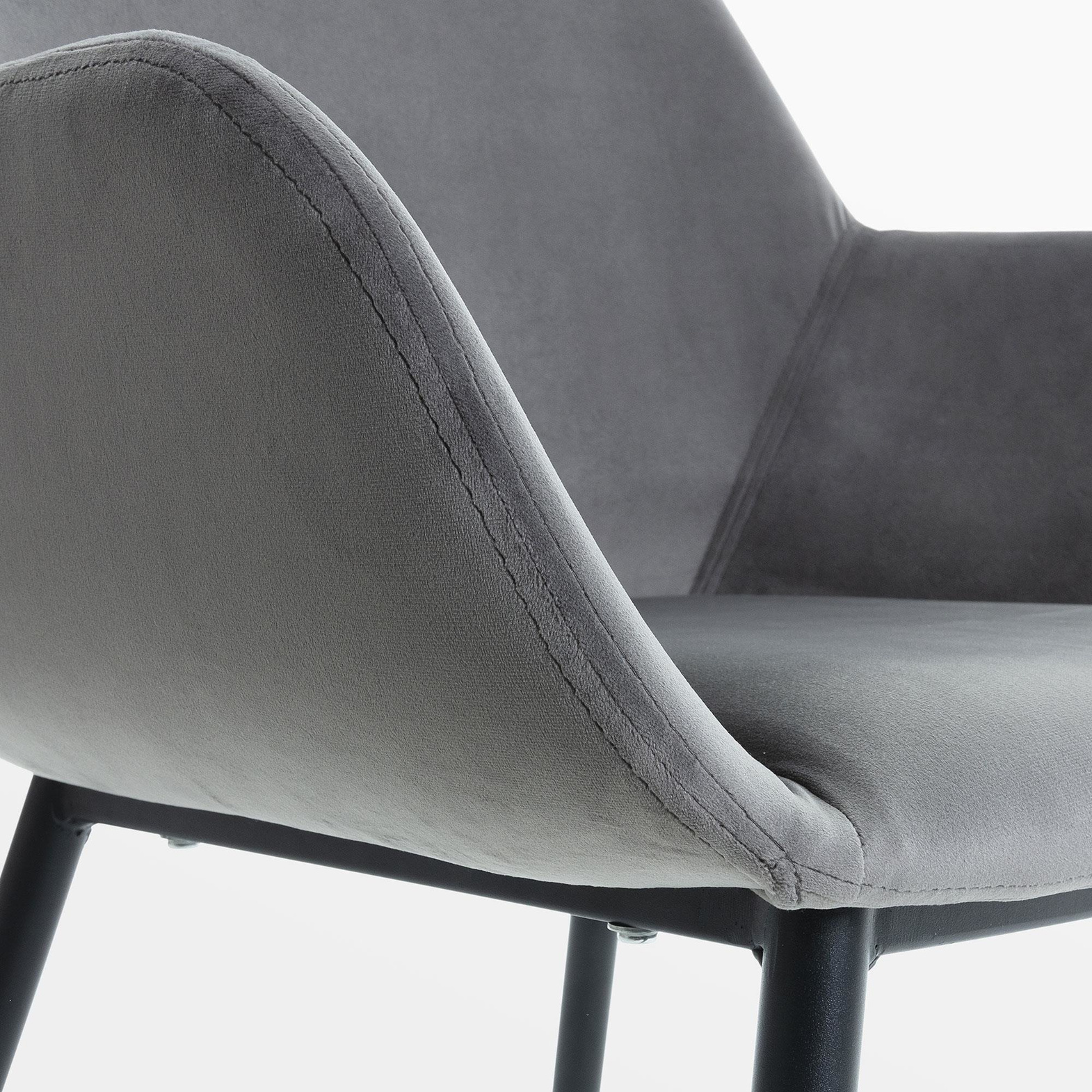 Armchair upholstered in velvet fabric. Black metal legs.