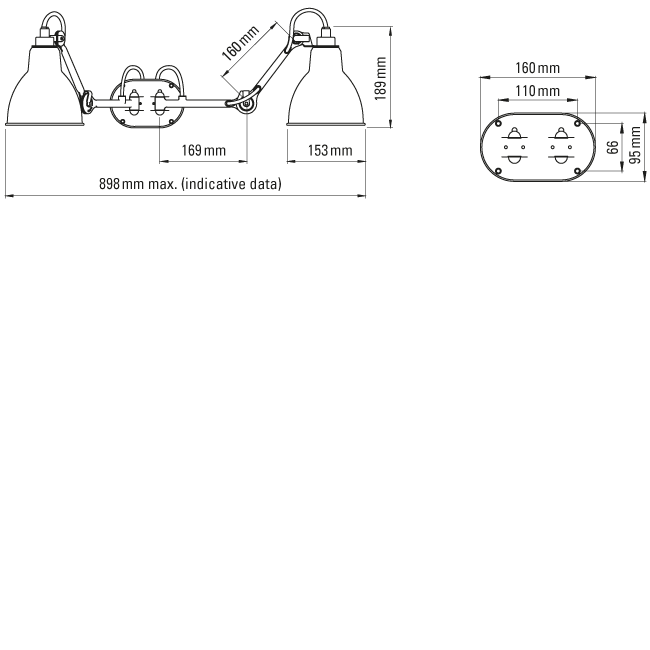 DCW:: Lampe Gras N°204 double Bath CLI wall lamp/sconce, black and white, diameter 15.3 cm