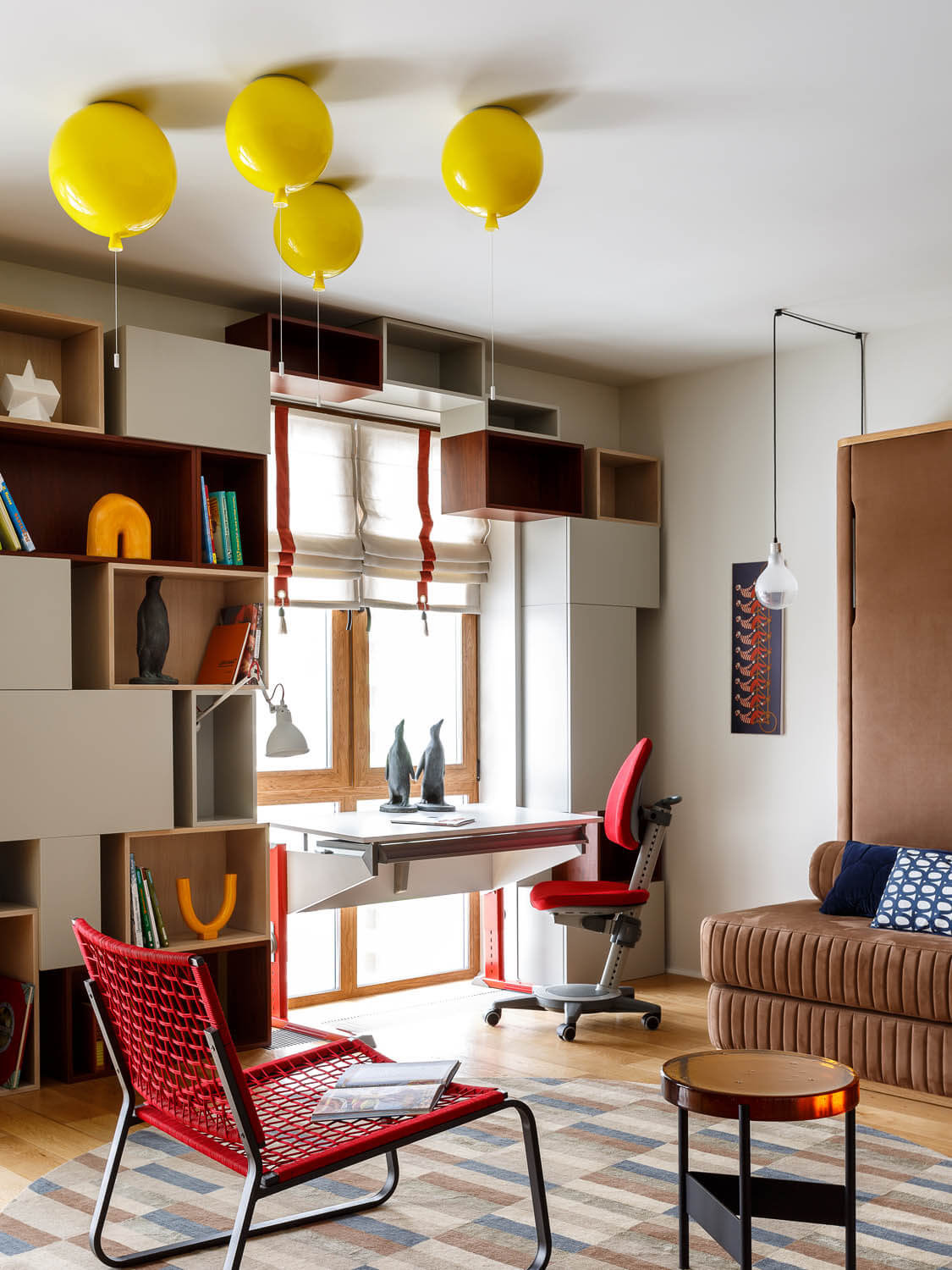 Lampa sufitowa dostępna jest w trzech rozmiarach oraz w wersji z trzeba "balonami" i "pięcioma".
