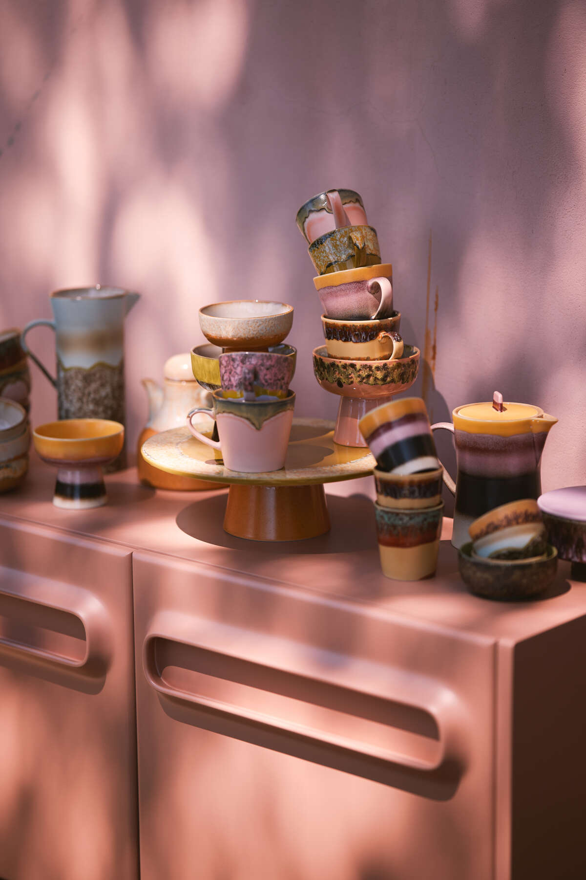 HKliving :: 2er-Set Latte-Becher aus Keramik im 70er-Jahre-Waldstil