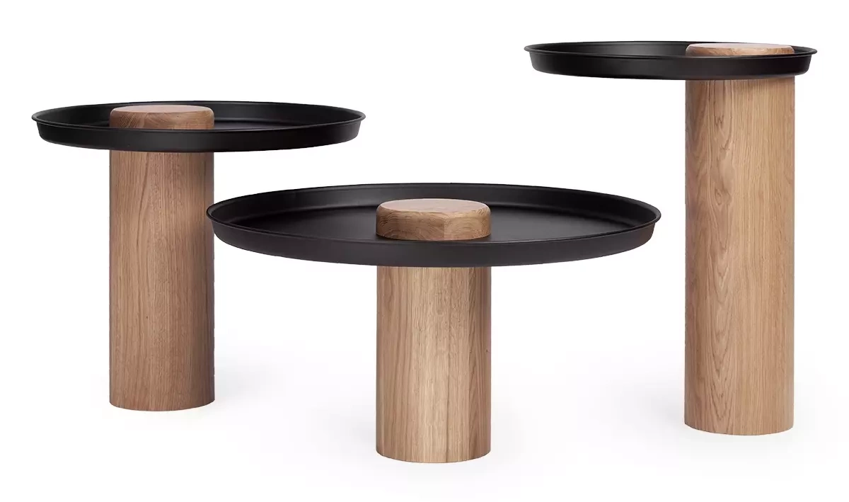 Nordifra :: Stolik Tyk okrągły dąb naturalny blat czarny wys. 57 cm