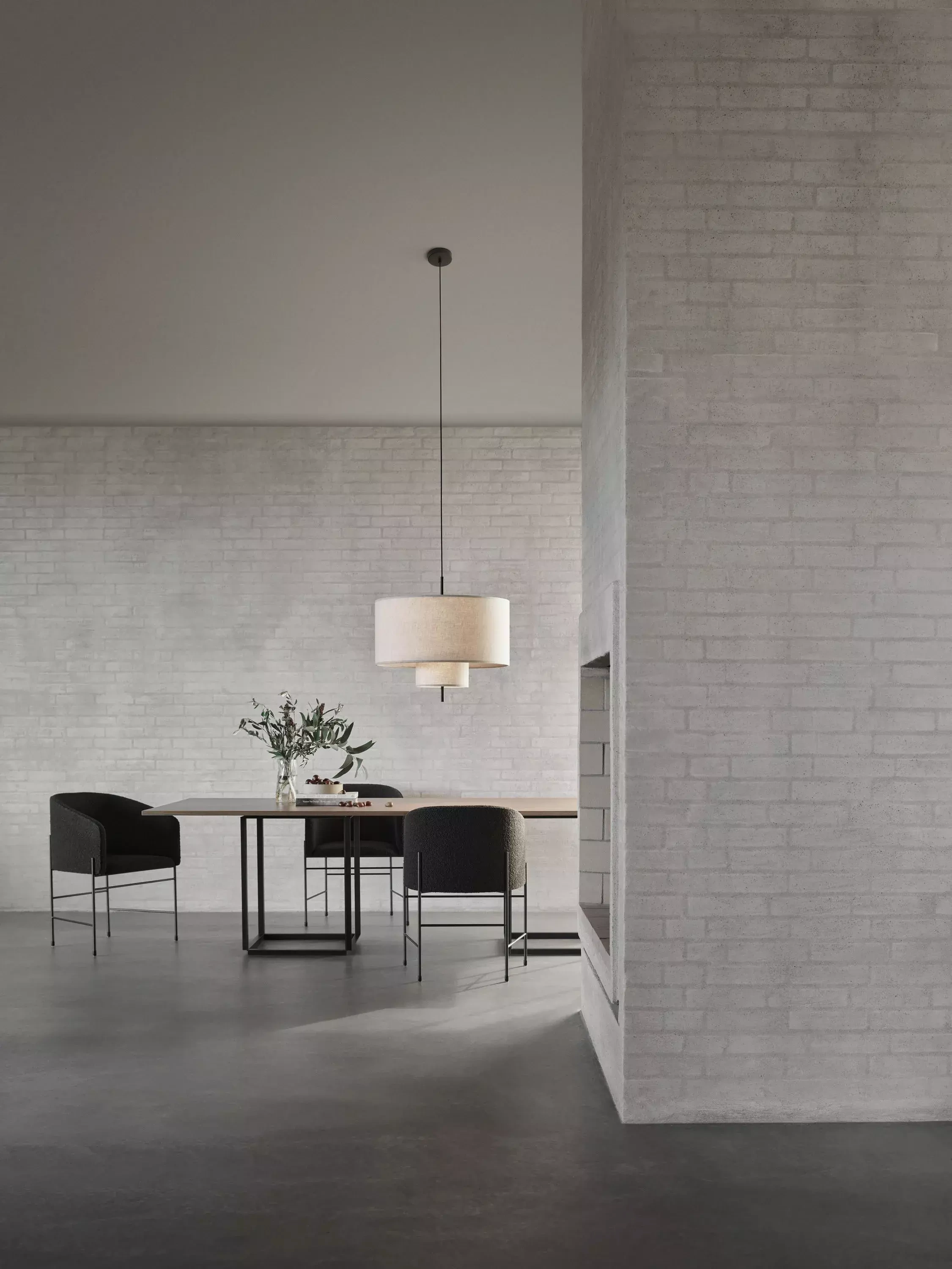 Charakterystyczne, nakładające się na siebie tekstylne klosze lampy tworzą efekt nastrojowego oświetlenia - dobrze nam znanego dzięki bestsellerowi New Works - lampie wiszącej Tense.