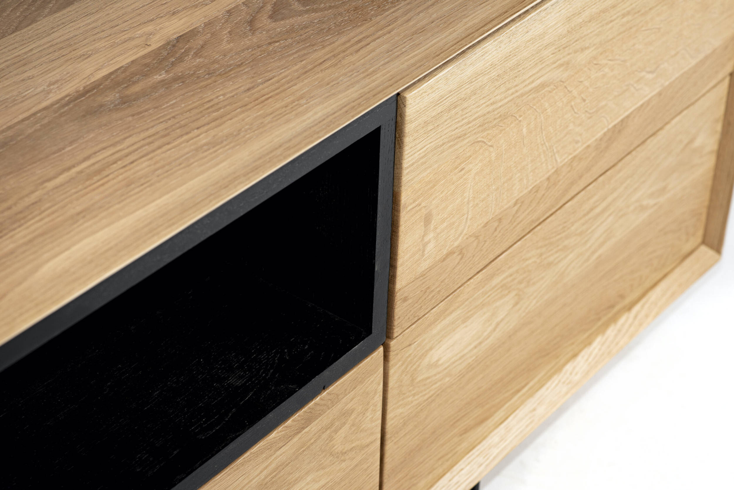 Komoda Rosto może zostać wykonana z: 100% drewna dębowego, 100% drewna jesionowego lub 100% drewna orzecha amerykańskiego.