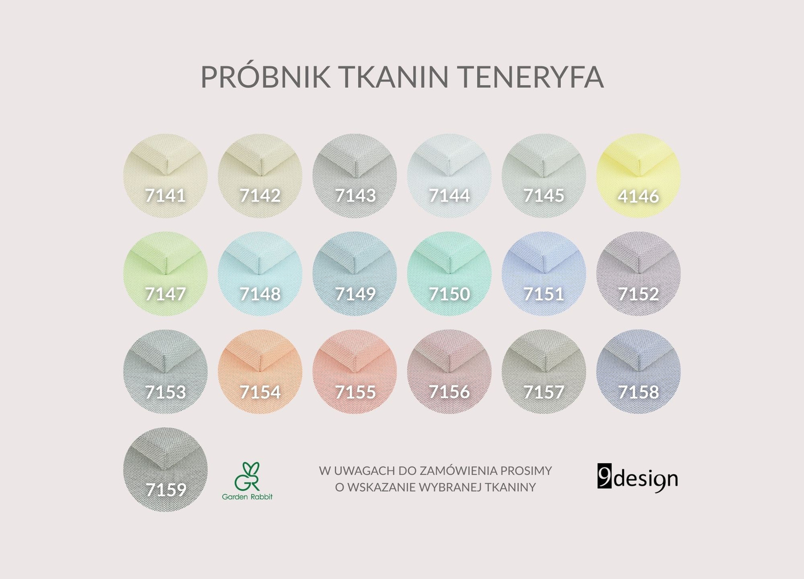 Mebel dostępny jest w trzech rodzajach tkanin outdoorowych: Teneryfa, Portoriko i Sycylia - każda w wielu kolorach do wyboru (patrz zdjęcia - próbniki).