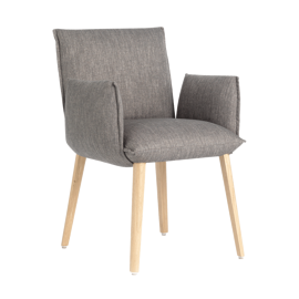 Na zamówienie krzesło dostępne jest w wielu różnych rodzajach i kolorach materiału obicia do wyboru. Możliwy jest też wybór w zakresie wybarwienia drewnianych nóg.