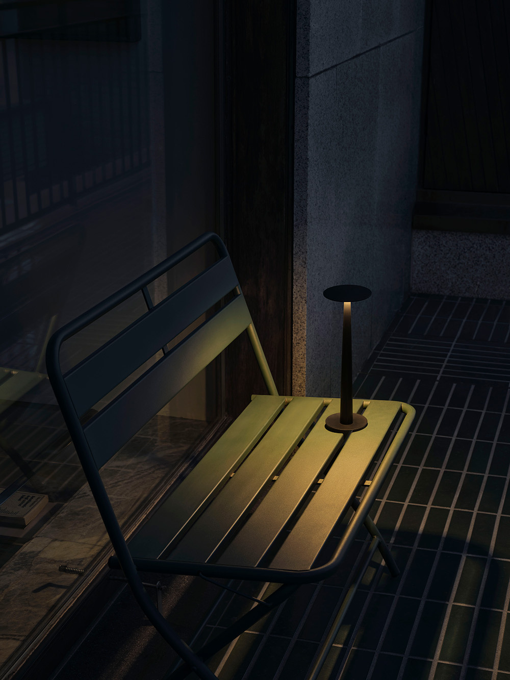 Podana cena dotyczy stołowej lampy Portofino w wersji z marmurową podstawą. Konfiguracja kolorystyczna: czarne aluminium oraz marmur w odcieniu "sahara noir" (pierwsze zdjęcie).